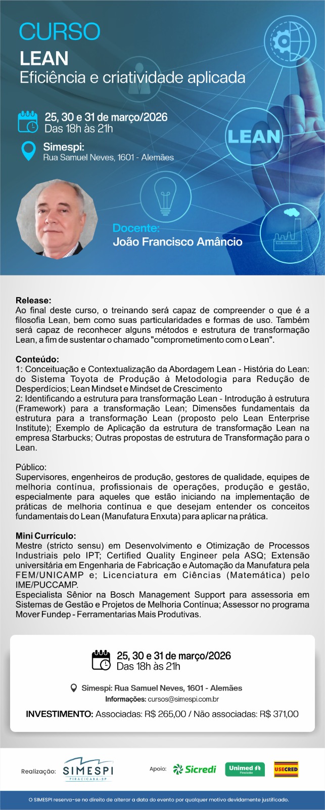 LEAN: EFICIÊNCIA E CRIATIVIDADE APLICADA Docente: JOÃO FRANCISCO AMÂNCIO