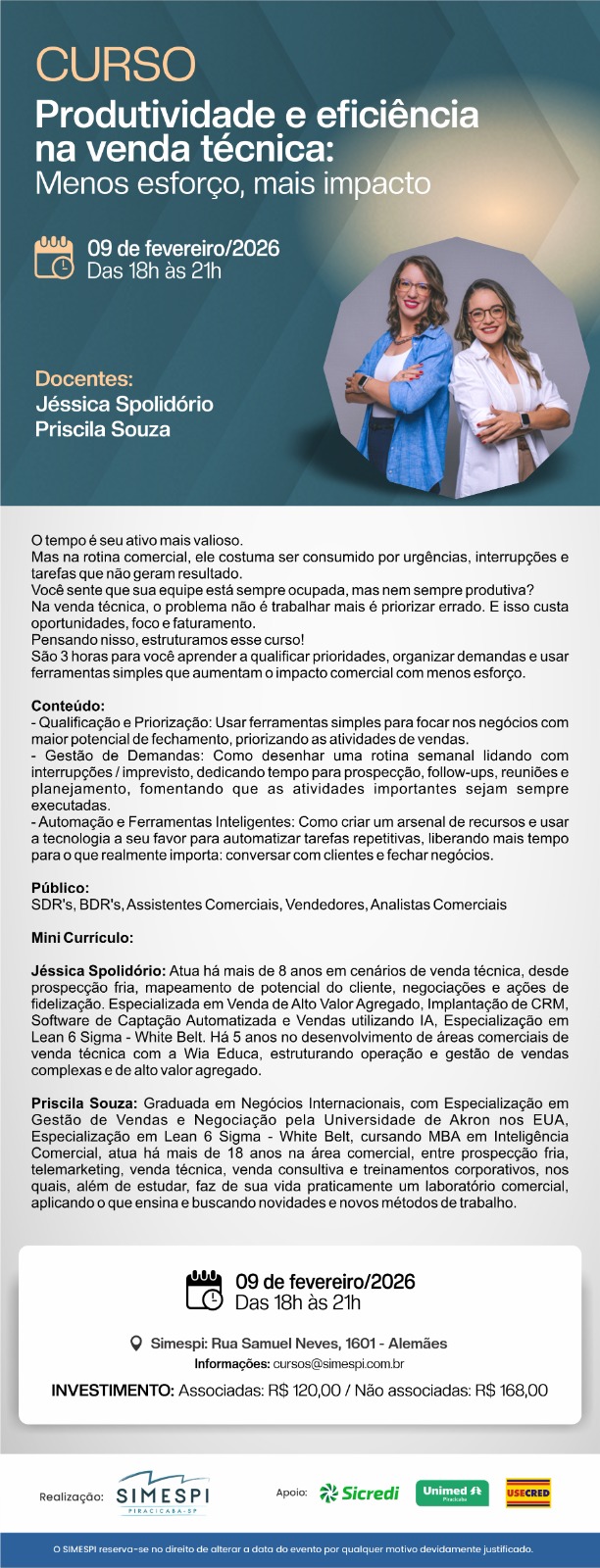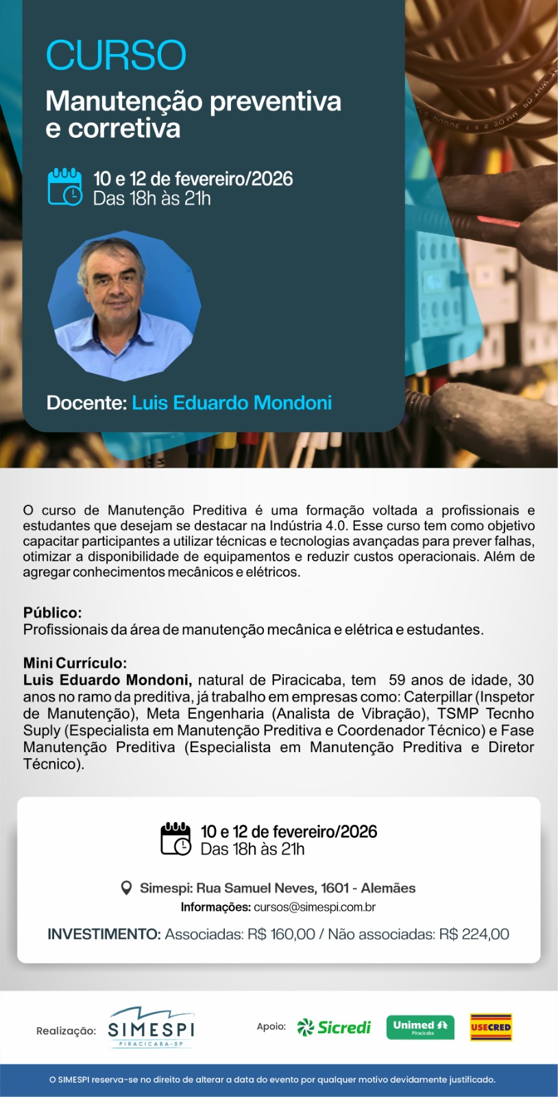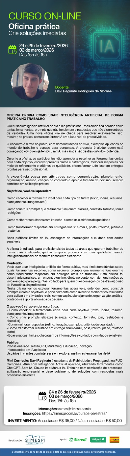 05 e 07/05 - 18h às 21h // 12/05 - 08h às 11h