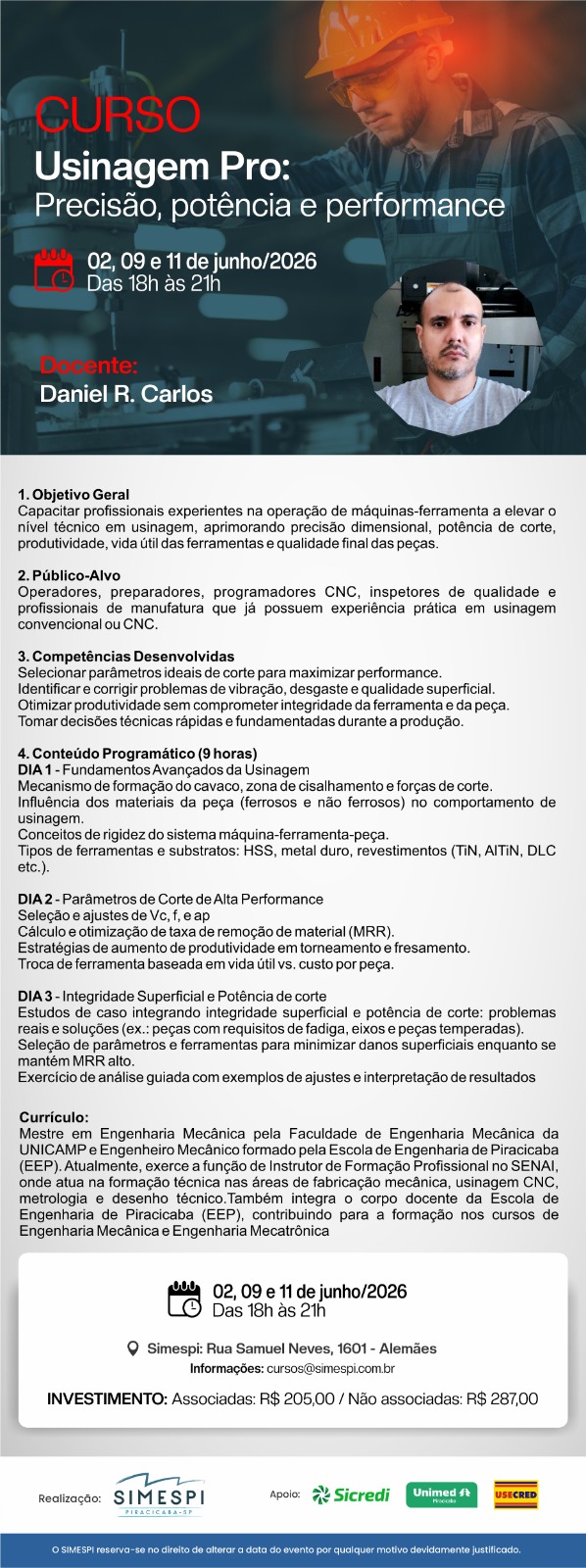 USINAGEM PRO: PRECISÃO, POTÊNCIA E PERFORMANCE Docente: DANIEL CARLOS