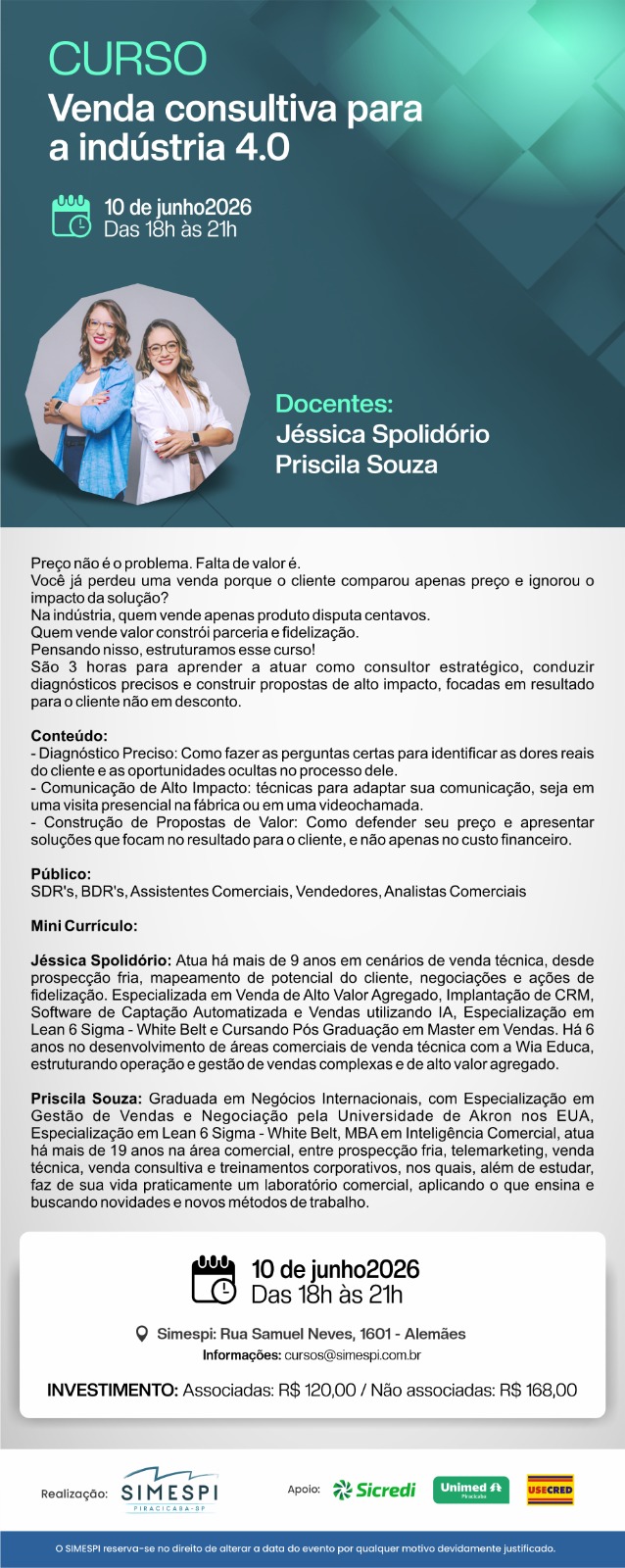 VENDA CONSULTIVA PARA A INDÚSTRIA 4.0 Docentes: JÉSSICA SPOLIDÓRIO e PRISCILA SOUZA