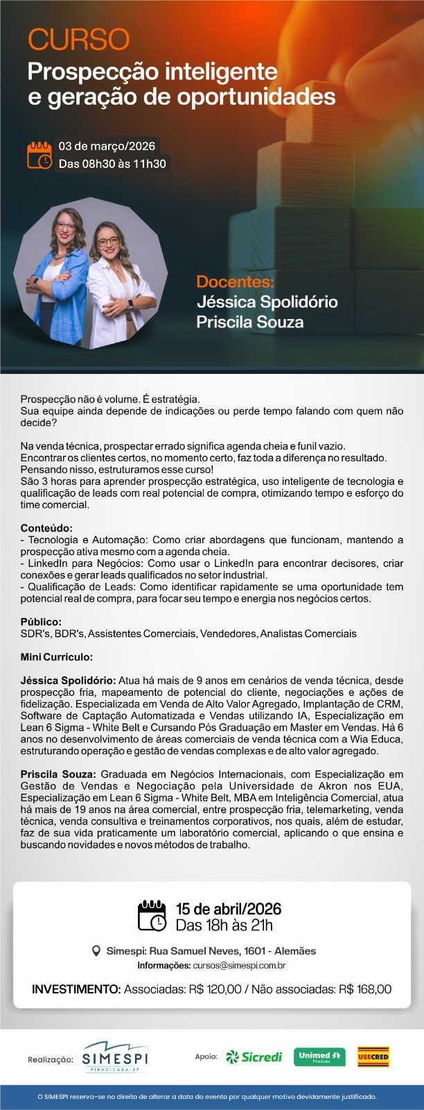 PROSPECÇÃO INTELIGENTE E GERAÇÃO DE OPORTUNIDADES Docentes: JÉSSICA SPOLIDÓRIO e PRISCILA SOUZA