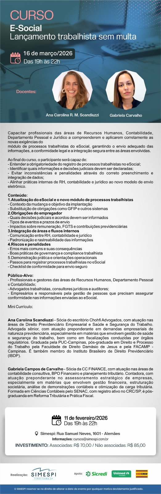 E-SOCIAL: LANÇAMENTO TRABALHISTA SEM MULTA Docente: ANA CAROLINA RIBEIRO MIGUEL SCANDIUZZI e GABRIELA CARVALHO