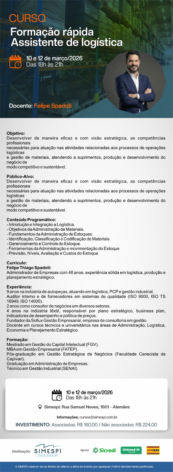 FORMAÇÃO RÁPIDA - ASSISTENTE DE LOGÍSTICA Docente: FELIPE SPADOTI
