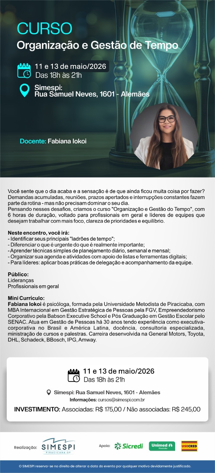 ORGANIZAÇÃO E GESTÃO DO TEMPO Docente: FABIANA IOKOI