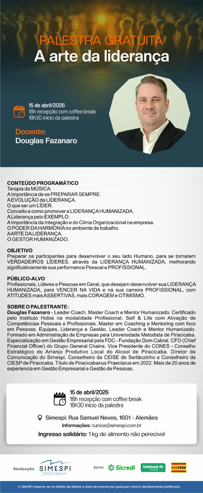 PALESTRA: A ARTE DA LIDERANÇA Palestrante: Douglas Fazanaro.