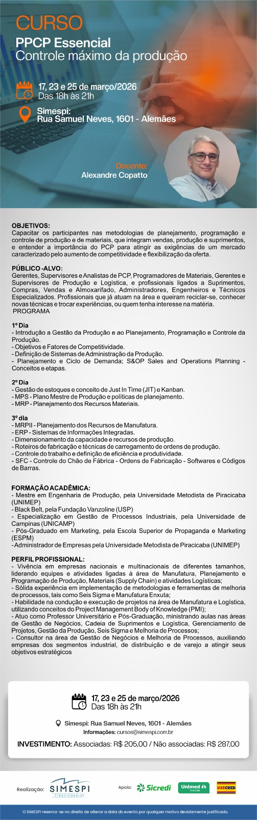 PPCP ESSENCIAL - CONTROLE MÁXIMO DA PRODUÇÃO Docente: ALEXANDRE COPATTO
