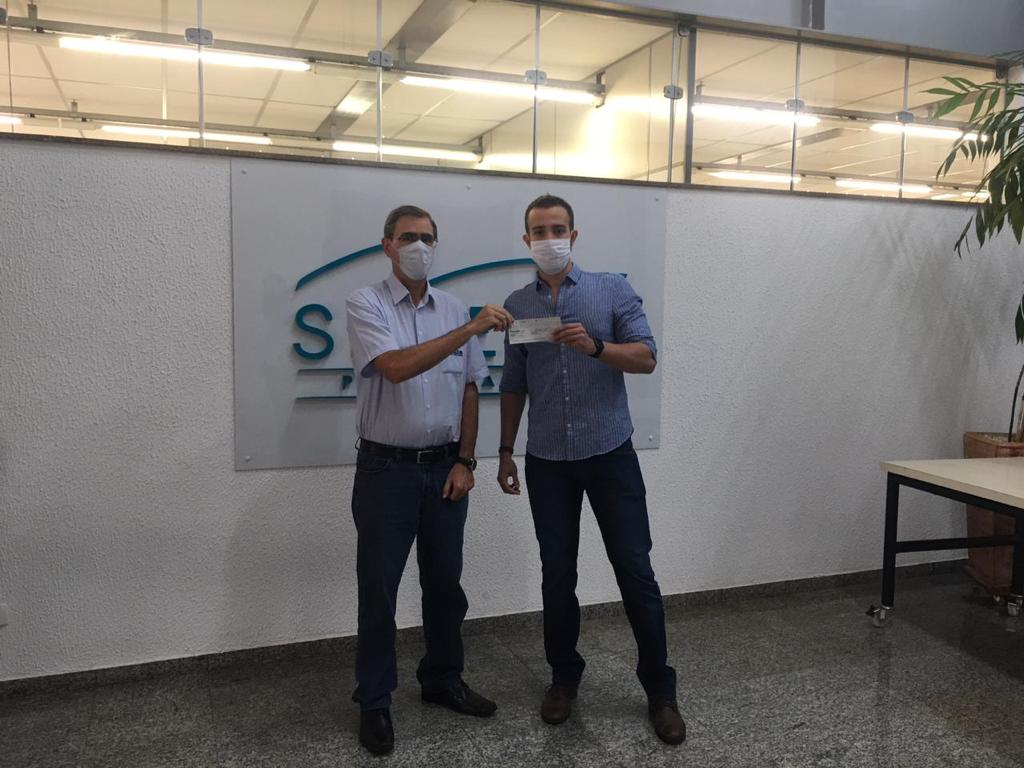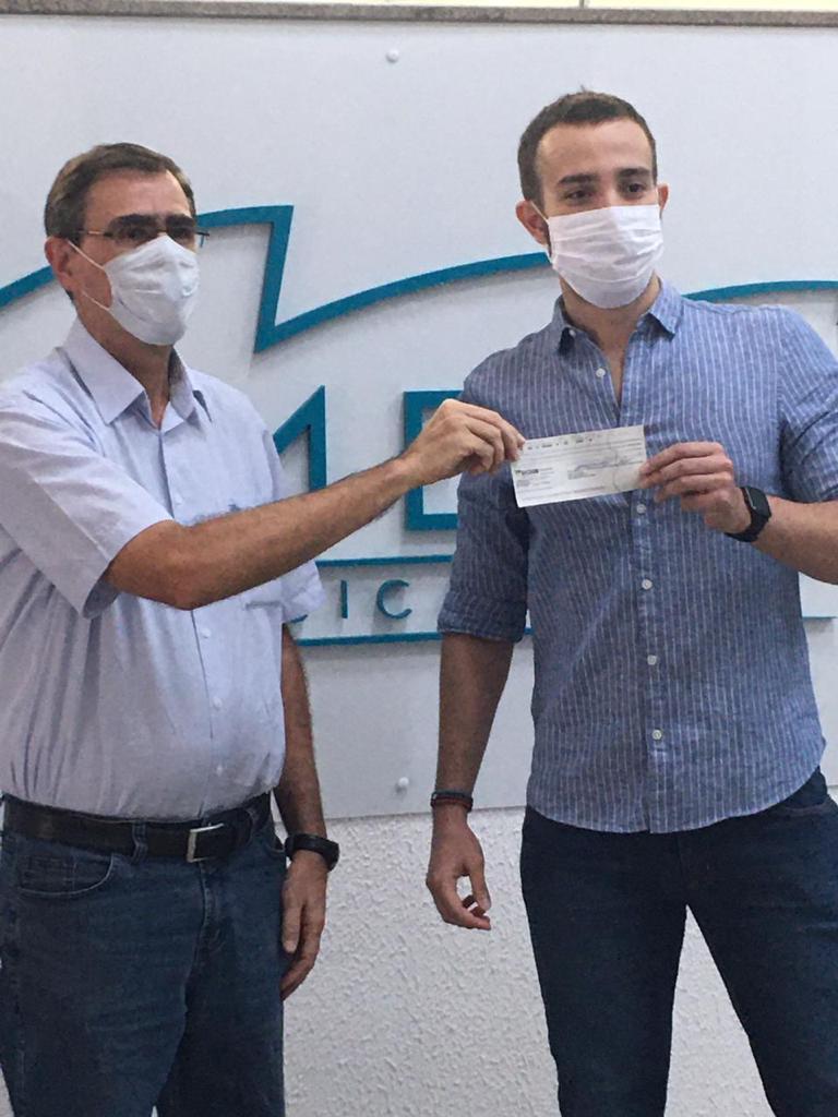 Pedro Henrique Campos Bellato recebeu das mãos do vice-presidente da entidade, Paulo Estevam de Camargo, um cheque no valor de um salário mínimo.
