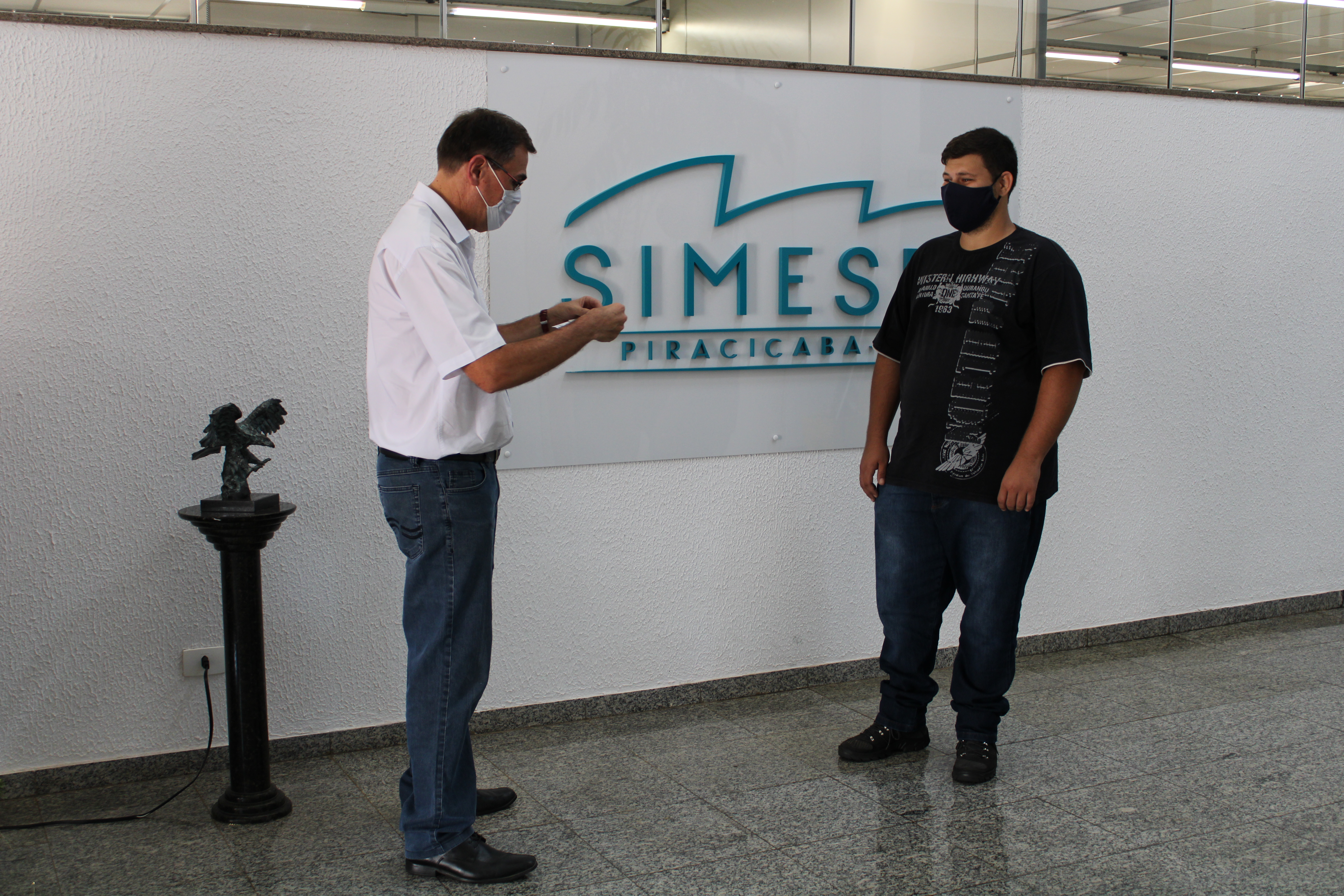 Neste semestre o aluno Maicon Luiz Galante foi quem recebeu das mãos do 1° vice-presidente da entidade, Paulo Estevam de Camargo, o prêmio.